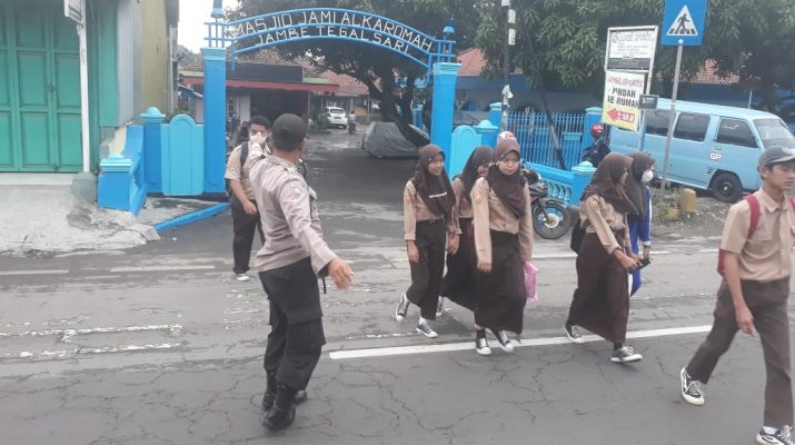 Jajaran Personil Polsek Plered Polresta Cirebon melaksanakan Gatur Lalu lintas pagi di Jalan raya Plered Jln. Otista tepatnya depan SDN3 Tegalsari dan SMPN2 Plered Ds. Tegalsari Kec Plered Kab Cirebon