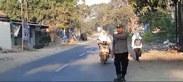 Personil Polsek Panguragan Polresta Cirebon melaksanakan Gatur Lalu lintas pagi hari di Jalan Nyimas Gandasari tepat nya di Depan Smp 1 Panguragan Kec. Panguragan Kab. Cirebon