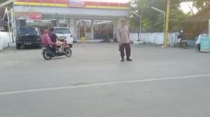 Personil Polsek karangsembung Polresta Cirebon melaksanakan Gatur Lalu lintas pagi di Jalan Karangwareng Kec. Karangwareng Kab. Cirebon