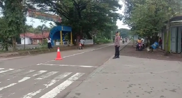 Personil Polsek karangsembung Polresta Cirebon melaksanakan Gatur Lalu lintas pagi di Jalan Karangwareng Kec. Karangwareng Kab. Cirebon