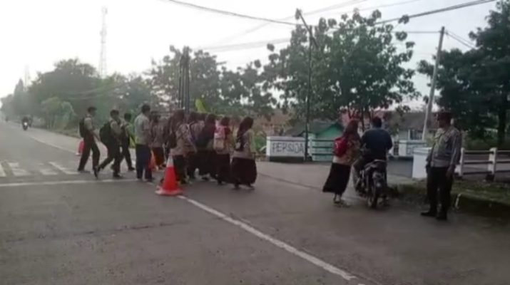 Personil Polsek karangsembung Polresta Cirebon melaksanakan Gatur Lalu lintas pagi di Jalan Karangwareng Kec. Karangwareng Kab. Cirebon