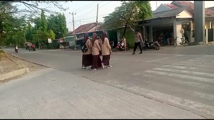 Personil Polsek karangsembung Polresta Cirebon melaksanakan Gatur Lalu lintas pagi di Jalan Karangwareng Kec. Karangwareng Kab. Cirebon