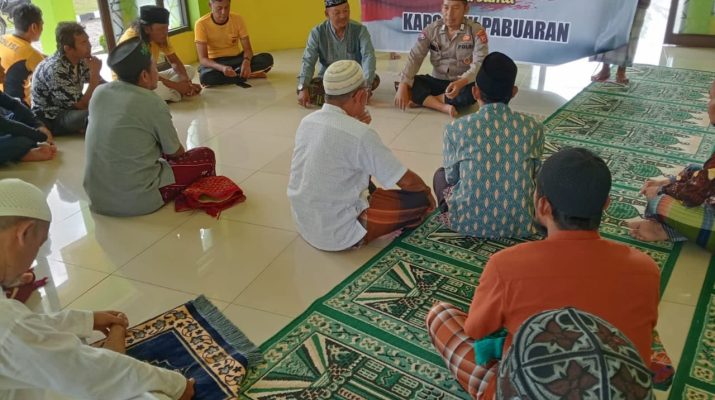 PABUARAN KAB. CIREBON. Jum’at 02/02/2024, AKP Moch. Soleh, SH. selaku Kapolsek Pabuaran Polresta Cirebon Polda Jabar, yang pada kesempatan ini diwakili oleh Ps. Kanit Binmas Bripka Usyanto, SH melaksanakan silaturahmi dan ajak jaga Kamtibnas dan mendengarkan saran masukan dari Tokoh Agama dan masyarakat melalui program Jumat Curhat di Masjid Bubuk Wathon Desa Pabuaran Wetan Kec. Pabuaran Kab. Cirebon.