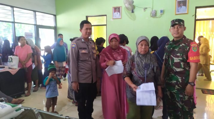 Bhabinkamtibmas Ds. Gamel Polsek Plered Polresta Cirebon Bripka Agus Sumardi bersama Bhabinsa Serda Fernando melaksanakan giat monitoring dan pengamanan Penyaluran Bantuan Pangan Tahun 2023 untuk warga Ds. Gamel Kecamatan Plered Kabupaten Cirebon, Senin (22/05/2023)