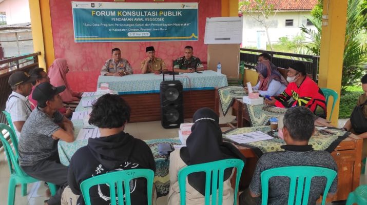 Waled, 15 Mei 2023 Bhabinkamtibmas desa Cisaat Polsek Waled Polresta Cirebon Polda Jabar Aiptu Achmad Suwandi dan Bhabinsa Desa Cisaat Serda Durakim menghadiri Rapat koordinasi Fasilitator Forum Konsultasi Publik (FKP) Pendataan Awal Regsosek di Kantor Balai Desa Cisaat Kec. Waled Kab. Cirebon.