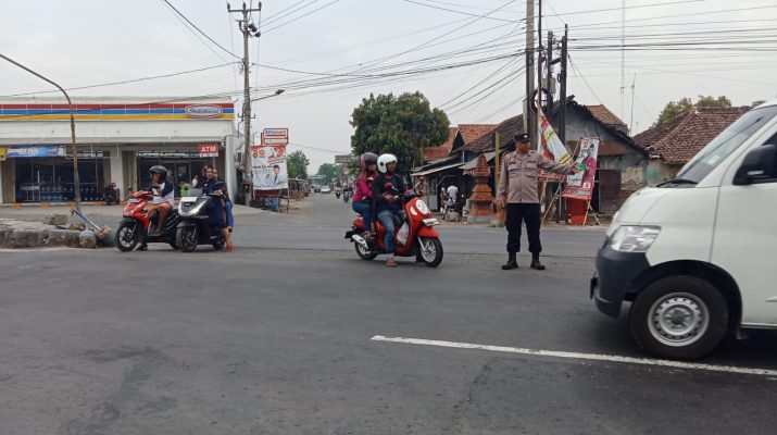 Jajaran Personil Polsek Susukan Polresta Cirebon Polda Jabar, melaksanakan Gatur Lalu lintas pagi di perempatan bunder Kec Susukan Kab Cirebon.
